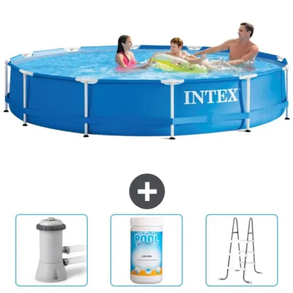 Intex Rund Ram Simbassäng 366×76 cmUpptäck det ultimata simnöjet med Intex runda ovanjordspool. Denna lyxiga pool erbjuder en solid och hållbar lösning för både unga och gamla. Med en snabb inställningstid på bara 30 minuter kan du omedelbart njuta av kylning i din egen bakgård. Tillverkad av stark polyesterförstärkt PVC, denna pool garanterar långvarig simglädje och klarar utan ansträngning det största vattennöjet. Lägg till lite stil till din trädgård och gör dig redo för sommarnöjen!