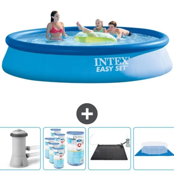 Intex Rund Uppblåsbar Pool – 396×84 cmEn Intex Easy Set ovanjordspool erbjuder en perfekt start på poolnöjen. Det är extremt enkelt och snabbt att installera, och det är ett bra sätt att njuta av att svalka sig under varma dagar. Denna pool är idealisk för oväntat vackert väder. Allt du behöver göra är att sprida ut poolen, blåsa upp kanten och fylla den med vatten. Så enkelt kan det vara!