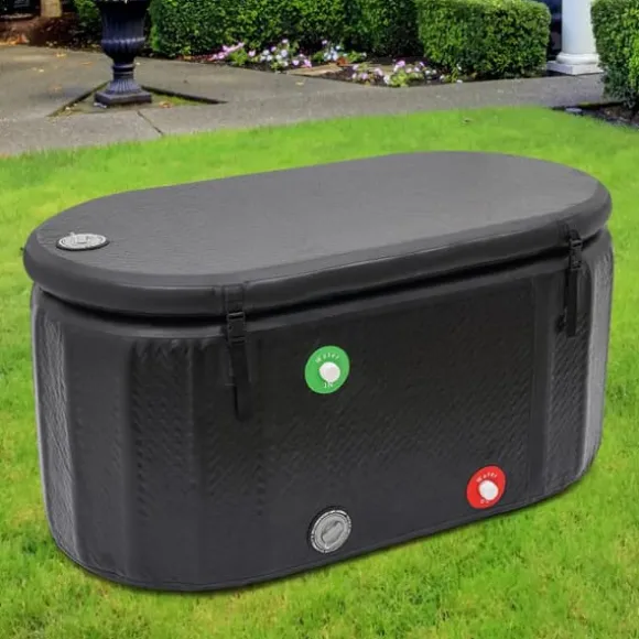 Bärbart 275 L kallbadkar med isolerat lockDetta uppblåsbara badkar ger effektiv kallterapi och nedkylning för vuxna. Med 275 l kapacitet, robust konstruktion och ett 80 mm isolerat lock håller det vattnet kallt hemma, i badrummet, utomhus eller på resor.