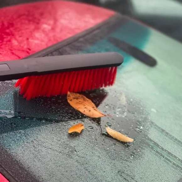 ?? mjuk borstborste – gjord av flexibelt material, skonsam mot lacken, tar effektivt bort snö från bilens kaross och tak utan att repa