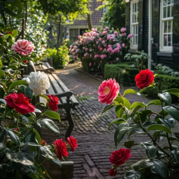 En Camellia föredrar en något sur jord, gärna rik på humus. Under sommaren är det viktigt att hålla jorden runt växten väl fuktig. Växten föredrar att vara i halvskugga. Så småningom kommer plantan att växa till en stor buske, men flera plantor kan också sättas ihop till en stor buske. Dessutom växer Camellia inte snabbt, vanligtvis cirka 15-20cm per år. Därför, särskilt i början, är det inte nödvändigt att beskära plantan regelbundet. Det är dock viktigt att ta bort förbrukade grenar och förbrukade blommor.