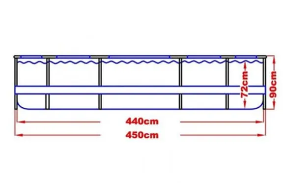 Med en kapacitet på 12157 liter vid 90% fyllning är denna pool idealisk för familjer och grupper. Det rekommenderas att inte fylla poolen mer än 80 cm i höjd och att endast använda klorklossar i den medföljande dispensern för att förhindra färgskillnader i duken. Poolens totala vikt i ofylldt tillstånd är 50 kg.