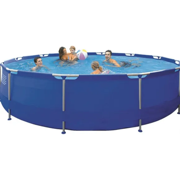 Denna ovanjordspool levereras komplett med alla nödvändiga tillbehör och stödutrustning. Denna består av själva poolen, en markduk som poolen är byggd på, stege, lock, en kraftfull filterpump, filter till pumpen, alla slangar till pumpen, monteringsram i metall med metallkopplingar, reparationssats (för att reparera oväntade revor i duken), klordispenser (exklusive klortabletter), filterskärm, slangklämmor med tillval för trädgårdsavlopp och avloppsventil.