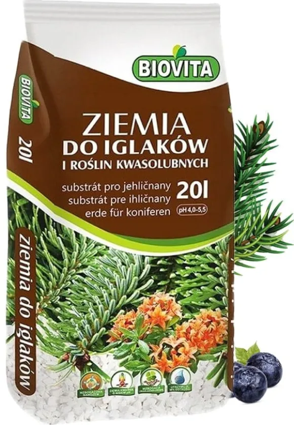 Jord för barrträd och syrofila växter är en produkt från det välkända märket Biovita. Detta är en specialjordblandning skapad för växter som kräver en sur reaktion. Denna jord är idealisk för plantering av blåbär, barrträd, ljung, azaleor, hortensior och andra syrofila växter.