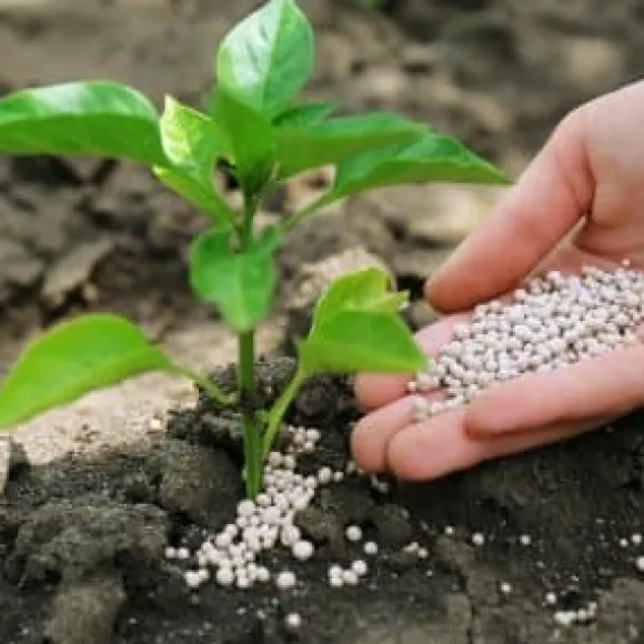 Gödsel bör spridas jämnt runt de gödslade plantorna. Vattna efter applicering av gödselmedlet, vilket kommer att öka gödslingens effektivitet.