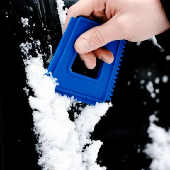 Ett praktiskt verktyg för att ta bort snö, frost och is från bilfönster och strålkastare.