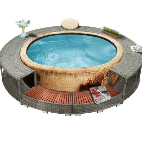 Denna eleganta rottingkant är ett lyxigt tillbehör för din badtunna. Den ger ditt spa ett chict och modernt utseende samtidigt som den skapar en mer funktionellt och användarvänligt spa-område.