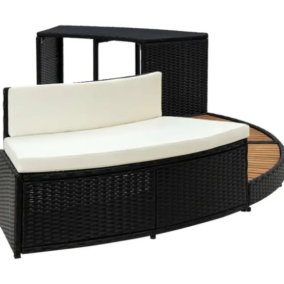 Spakanten har ett inbyggt förvaringsutrymme så att du kan ha dina saker organiserade och inom räckhåll. Den kraftiga stålramen och det väderbeständiga akaciaträet med oljad yta klarar kraftig användning och är mycket hållbar. Den har en minisoffa med dyna för maximal komfort.