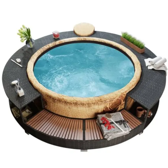 Denna eleganta rottingkant är ett lyxigt tillbehör för din badtunna. Den ger ditt spa ett chict och modernt utseende samtidigt som den skapar en mer funktionellt och användarvänligt spa-område.