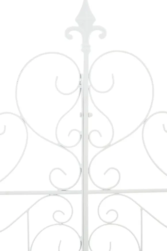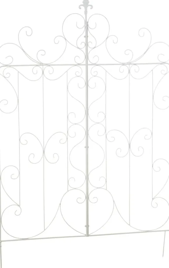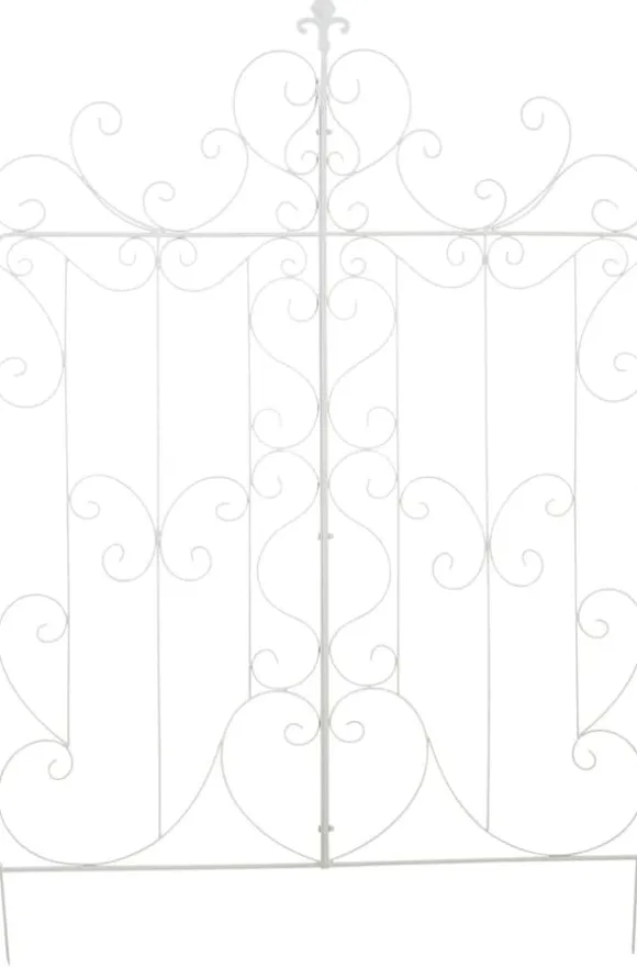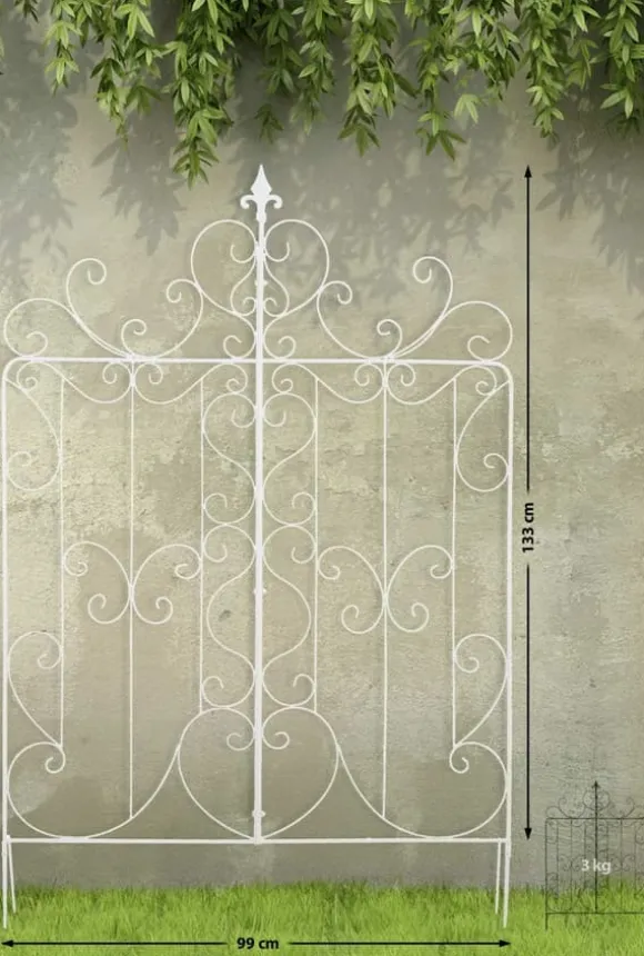 Klättringsram för trädgården. Klättringsramen är utformad i en rustik landsstil och sticker ut med sin klassiska design och vackra detaljer. Perfekt för trädgårdsdesign och perfekt för att sätta växter dekorativa i rampljuset. Det fristående rutnätet levereras ursprungligen förpackat och är lätt att montera. De två halvorna måste bara skruvas ihop och sedan fixeras i marken med de medföljande markkrokarna. Detaljer :. Total höjd (utan markkrokar): 133 cm. Total bredd: 99 cm. Totalt djup: 1 cm. Vikt: 3 kg. Material:. Metallspecialiteter :. Med snygga dekorationer. I en landsstil. Fristående