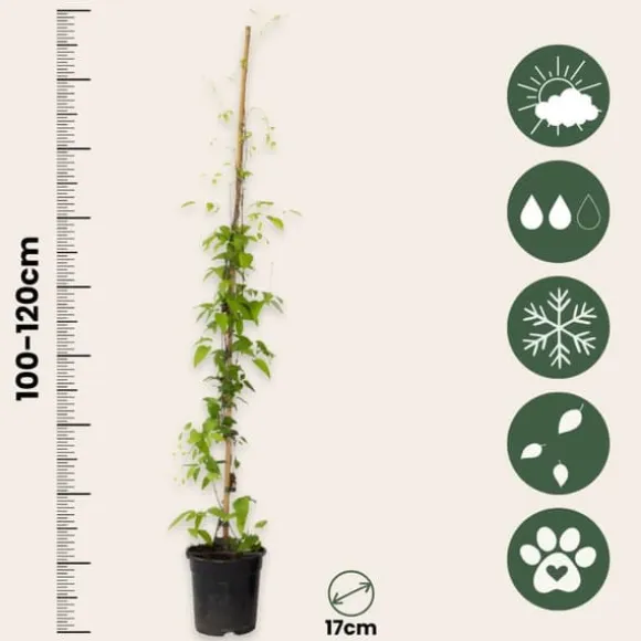 Vid leverans har plantorna en höjd på 100-120 cm, mätt inklusive plantskolekrukan. Plantorna levereras i en plantskolekruka med en diameter på 17 cm.