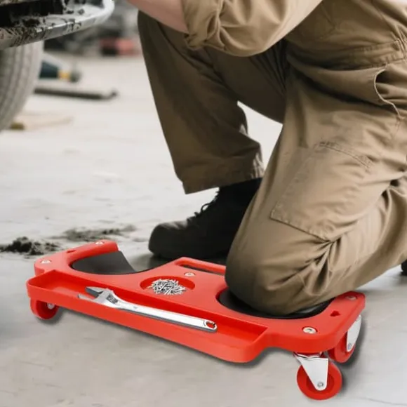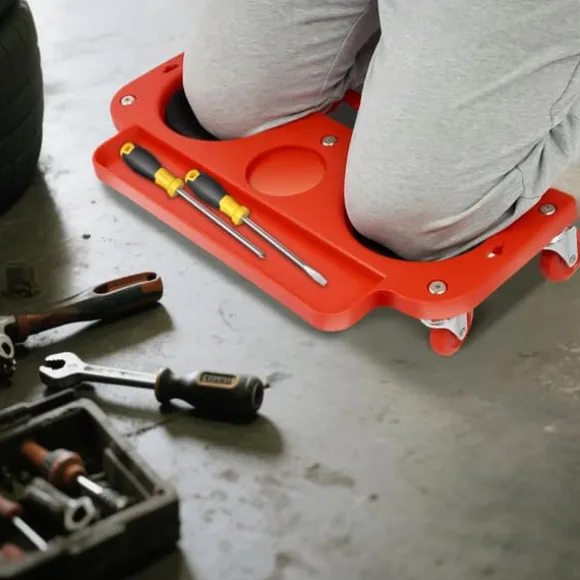 Rullande knäkudde för bekväm och effektivt arbeteDenna rullbara knäkudde i röd färg avlastar lederna vid arbete på hårda golv. Ergonomisk form med mjuka skumkuddar ger skonsamt stöd, medan smidiga hjul gör att du kan förflytta dig utan att resa dig – perfekt för hemmaprojekt, trädgård eller verkstad.