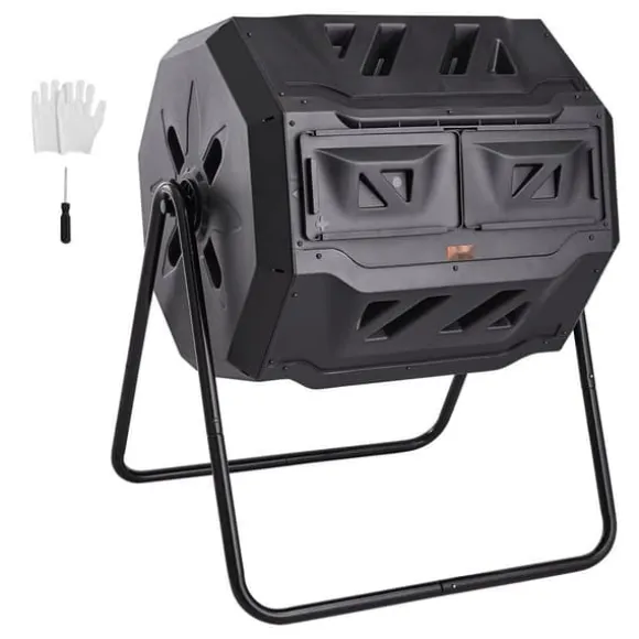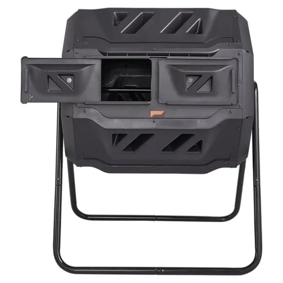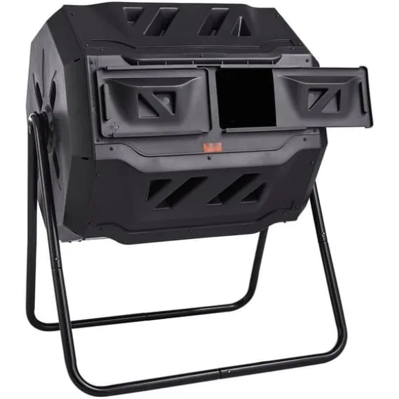Dubbla kammare med stort kapacitet: Vår kompostbehållare har en dubbelkammare med ett generöst kapacitet på 162,7 liter (43 gallon). Perfekt för stora familjer och hobbyträdgårdsmästare. Du kan kompostera i en kammare samtidigt som du lägger nytt organiskt material i den andra kammaren.
