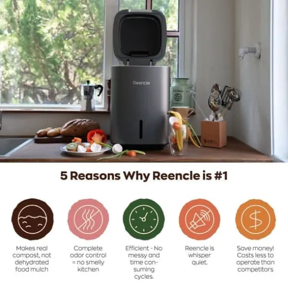 Reencle Prime är den ultimata lösningen för snabb och luktfri hemkompostering. Denna avancerade elektriska kompostmaskin omvandlar matavfall till näringsrik kompost på mindre än 24 timmar, vilket minskar matavfall och främjar en hållbar livsstil. Perfekt för alla hem, oavsett om du har en stor trädgård eller en liten lägenhet.