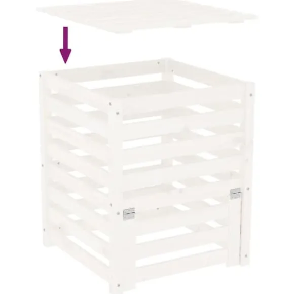 - Massivt furuträ: Massivt furuträ är ett vackert naturmaterial. Furuträ har raka fibrer, och knutarna ger materialet sin rustika utstrålning. Denna kompostbehållare är gjord av massivt furu, vilket gör den robust och stabil.