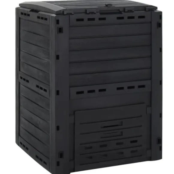 - Slitstarkt material: Kompostlådan är tillverkad av slitstark polypropen med rottingutseende. Den är UV-beständig och väderbeständig, vilket gör den lämplig för utomhusbruk.