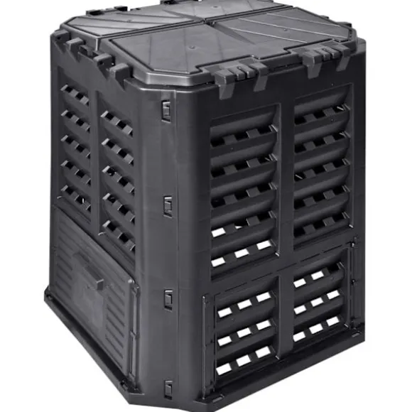Den här väderbeständiga kompostlådan hjälper till att snabba på kompostering av organiskt material och förbereder gödselmedel. Kompostlådan är lämplig för såväl trädgård- som köksavfall.