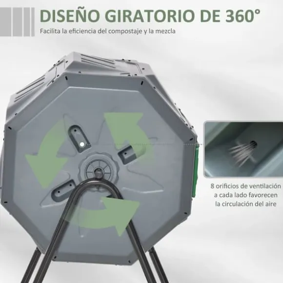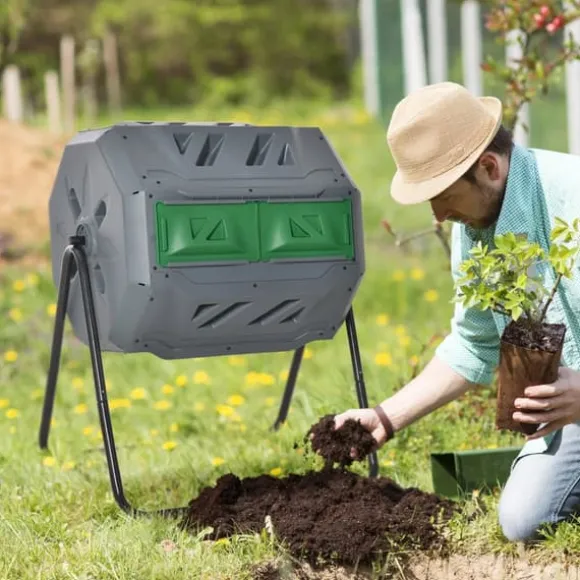 Roterande komposttunna med två kammare – grå & grönFörvandla köks- och trädgårdsavfall till näringsrik kompost snabbt och enkelt. Den robusta konstruktionen i stål och PP-plast, 360°-rotation och effektiv ventilation gör komposteringen smidig, ren och effektiv för en grönare trädgård.