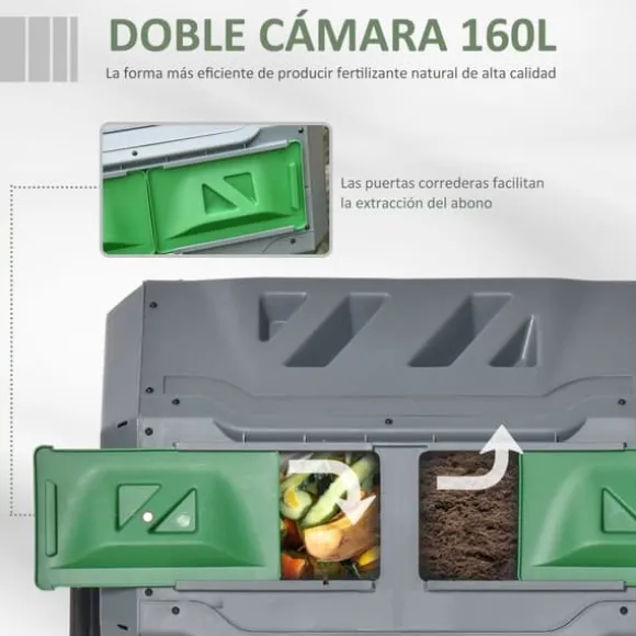 Plats för mycket160 l kapacitet sväljer både matrester, gräsklipp och löv – perfekt för medelstora trädgårdar.