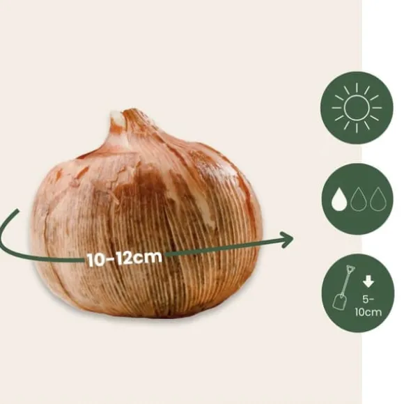 Att plantera storblommiga krokus är enkelt och kräver liten ansträngning. Lökarna kan planteras på hösten, gärna på en solig eller halvskuggig plats. Gräv ett hål två till tre gånger så djupt som höjden på glödlampan och placera glödlampan med spetsen uppåt. Täck löken med jord och tryck ner lätt. För en större färgeffekt är det bäst att plantera flera lökar tillsammans. Crocus Large Flower kräver minimal vård och är ganska tolerant mot torra förhållanden. Efter blomningen kan förbrukade blomstänglar skäras av, men det är viktigt att lämna bladverket intakt tills det har vissnat helt. Detta gör att lökarna kan lagra energi för nästa växtsäsong.Crocus Large Flowering är en slående och färgstark krokussort med stora blommor. Plantering och skötsel av Crocus Storblomning är lätt och växten kräver minimal ansträngning för att trivas. Njut av de vackra blommorna av denna krokusart och välkomna våren med en färgglad touch i din trädgård.