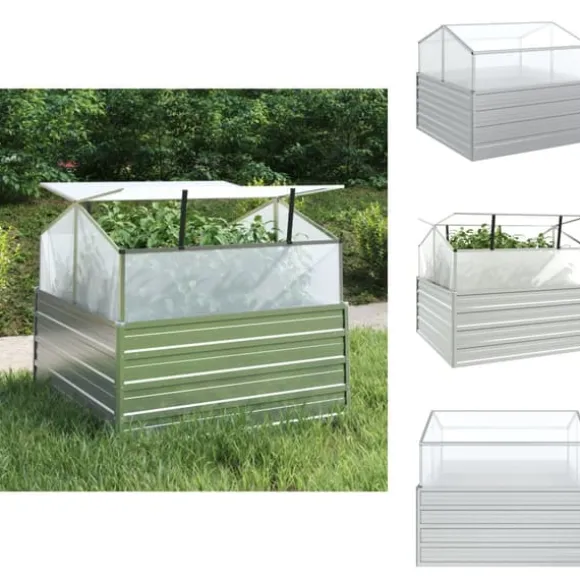 Upphöjd odlingslåda med växthus 100x100x85 cm silver Denna upphöjda odlingslåda i galvaniserat stål med växthus är mycket lämplig för att odla unga plantor. Den släpper in det nödvändiga ljuset och skyddar samtidigt växterna underifrån mot dåligt väder. Upphöjd odlingslåda med växthus 100x100x85 cm silver (1x) Din beställning kommer att levereras i ett paket. Så snart din beställning har packats får du omedelbart din leveransinformation från oss. Vi hoppas att du blir nöjd med ditt köp.