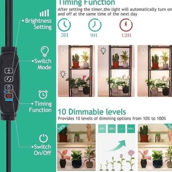 Enkel installation och användning: Den smala och lätta designen möjliggör enkel installation i olika uppställningar. Anslut helt enkelt EU-adaptern och slå på den för att ge dina växter det ljus de behöver.