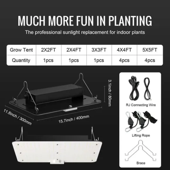 Passar alla typer av växter: Växtlampan används ofta för odling av alla typer av grönsaker, frön, blommor och andra växter. Den är särskilt fördelaktig för installation i växthus, odlingstält, på balkonger och växtställ.