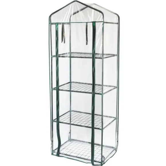 Ett robust växthus med 4 hyllplan och PVC-överdrag