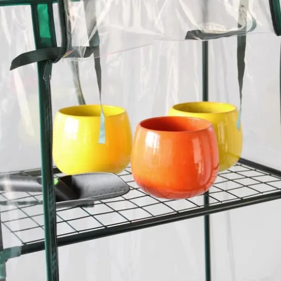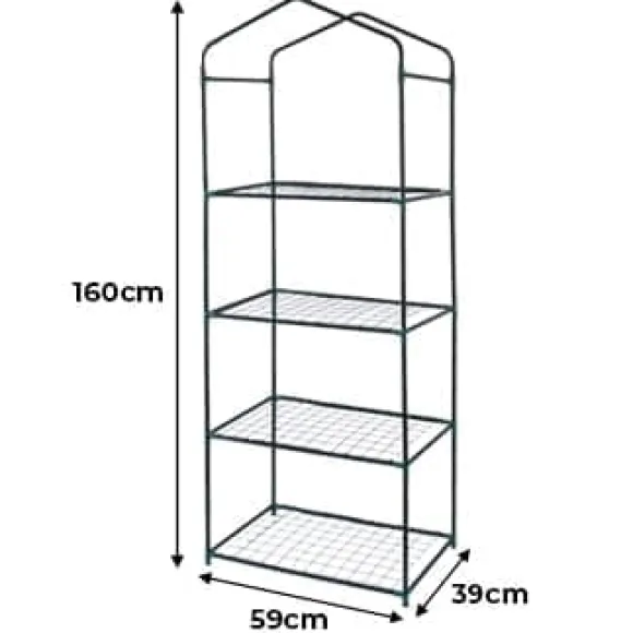 Ge dina växter och plantor den bästa starten på livet med detta praktiska miniväxthus, oavsett årstid. Detta miniväxthus mäter 59 x 39 x 160 cm och är perfekt för små utrymmen med gott om plats och gott om hyllor för att organisera dina växter. Det slitstarka, vattentäta plastskyddet skyddar dina växter från väder som regn, frost, hårda vindar och UV-strålar. Växthuset kan användas inomhus och utomhus och rymmer en mängd olika växtstorlekar.