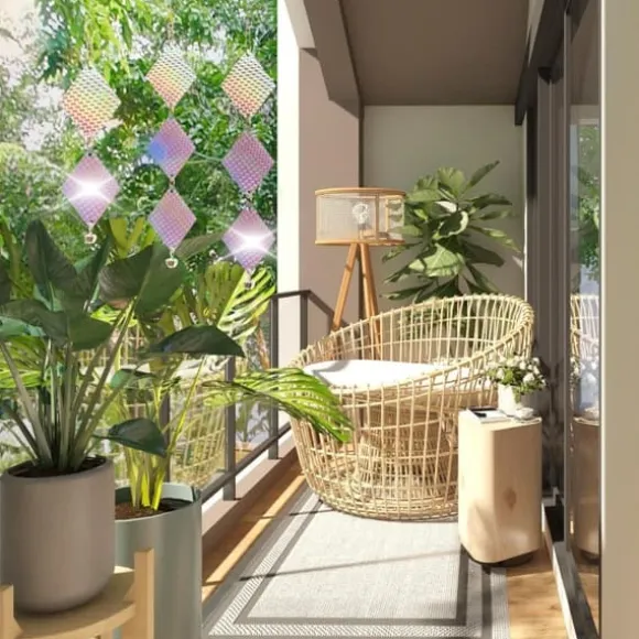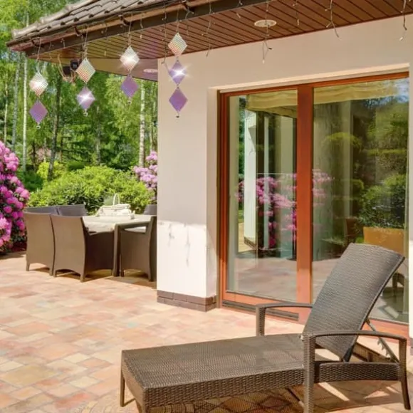Den dubbelsidiga reflekterande ytan fungerar som en visuell varning för att förhindra att fåglar kolliderar med fönster, perfekt som fönsterdekoration i hem eller kontor.