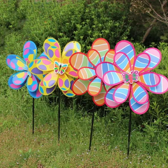 Paketet innehåller 4 vindspel med färgstarka mönster som livar upp trädgården, bakgården, balkongen eller gräsmattan och skapar ett lekfullt och glatt utomhusutrymme.