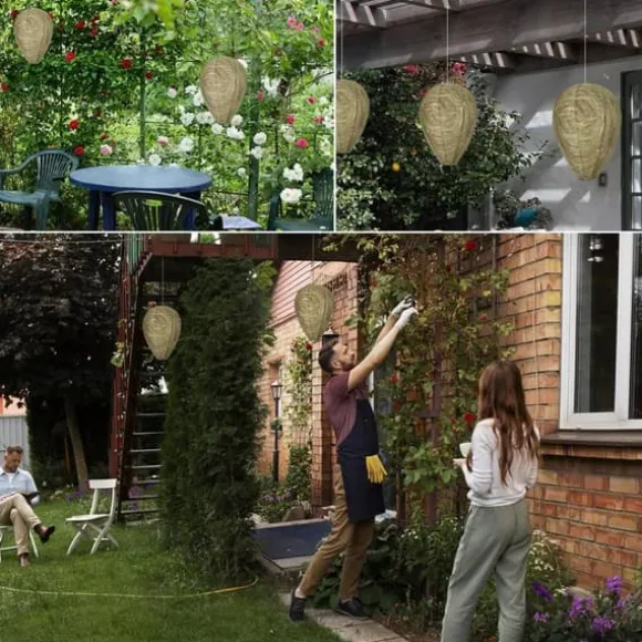Enkel installationsprocess: Börja med att dra ut pappersdelen från det konstgjorda getingboet. Metallstrukturen fästs sedan inuti som stöd. Häng upp dem där du behöver slå ner getingarna.