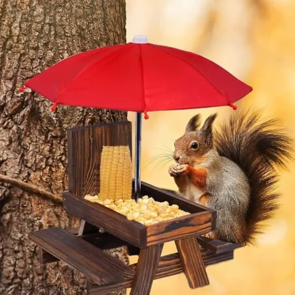 Söt design: Det fina lilla ekorrbordet låter din söta och busiga ekorre sitta bekvämt vid bordet och äta – precis som en liten person. Denna roliga ekorrmatare ger skogens små djur glädje och lekfullhet.