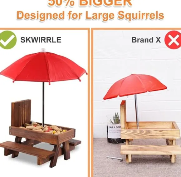 Bordets yta och de två sidorna av sittplatserna är rymliga nog för att rymma två ekorrar samtidigt, vilket ger dem tillräckligt med plats att äta bekvämt. Oavsett om det används av en eller två ekorrar blir upplevelsen både rolig och trivsam.