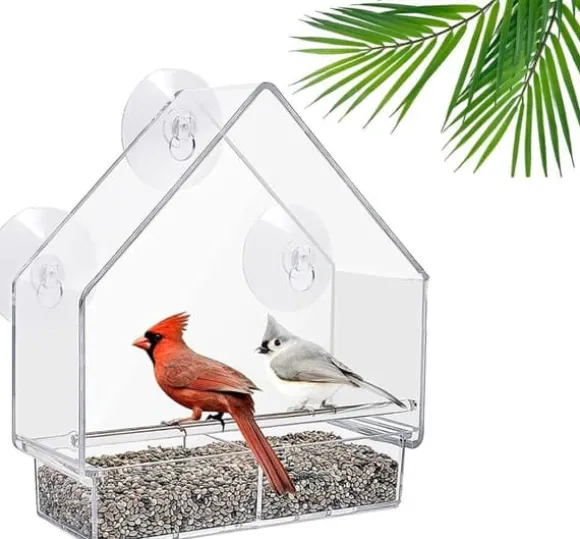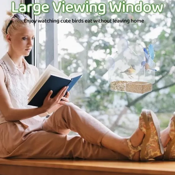 Starka sugkoppar: Vårt fönsterfågelmatare är utrustad med tre starka sugkoppar som klarar tillräcklig vikt och sitter stadigt på fönstret, vilket låter dig njuta av fågelskådning utan avbrott.