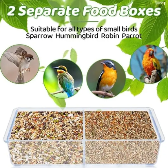 Lätt att fylla på och rengöra: Försedd med en avtagbar matbricka som gör det enkelt att rengöra fågelhuset och fylla på färskt fågelfrö utan att behöva ta bort hela fågelhuset, vilket säkerställer en hälsosam och ren matmiljö för fåglarna.