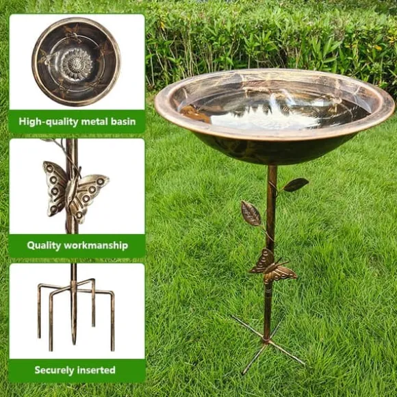 Denna trädgårdsfågelbad har en diameter på 12 tum (ca 30,5 cm) och en höjd på 31 tum (ca 80 cm inklusive stång), med en klassisk vintage-design som är elegant och charmig. Den blir en vacker detalj i trädgården. Storleken är lämplig för små fåglar att leka och dricka, samtidigt som den lockar fler fåglar och skapar liv i trädgården.