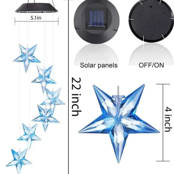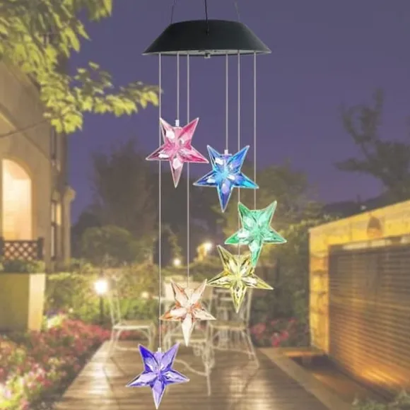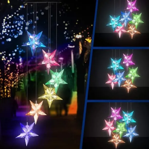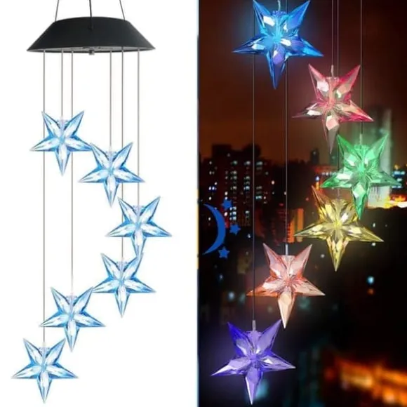 Färgväxling: Det hängande vindspelet är utrustat med solcellsdrivna färgväxlande LED-stjärnor. Färgerna växlar mjukt och behagligt under natten.