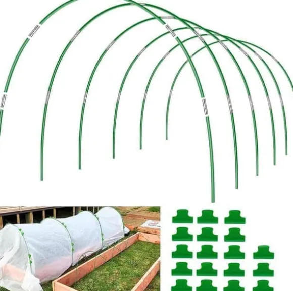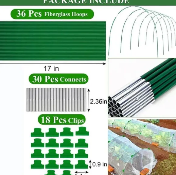 Enkel installation: Sätt bara ner bågarna i jorden och använd kopplingar för att sammanfoga 5 eller fler bågar. Böj bågarna och tryck ner den andra änden i jorden, fäst sedan täckmaterialet med klämmor. Setet är lämpligt för radtäckning, upphöjda bäddar, grönsaksland och vinodlingar för att skydda växterna mot djur.