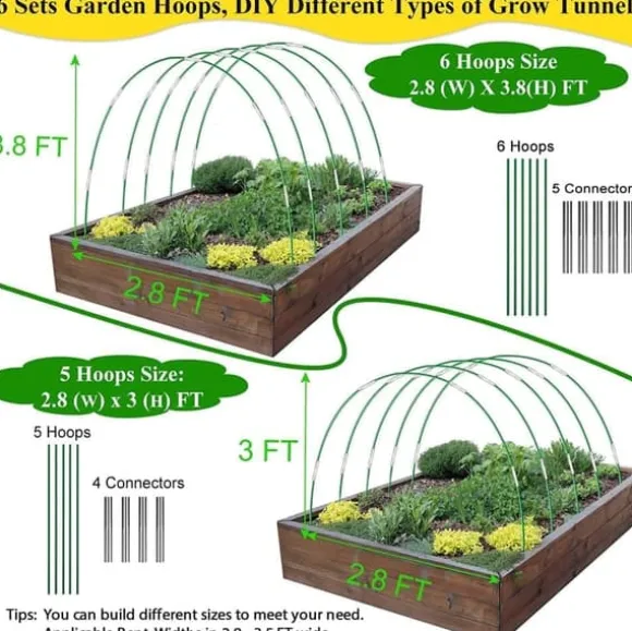 Flexibel kombination: Du kan fritt kombinera 5 eller fler stödstänger efter behov för att skapa olika storlekar och bygga till exempel en trädgårdstunnel, ett miniväxthus, ett litet drivhus, hönsnät eller trädgårdsbågar. (Trädgårdsnät ingår ej)