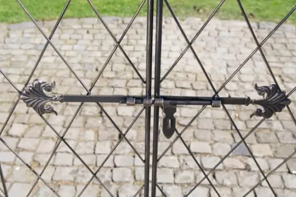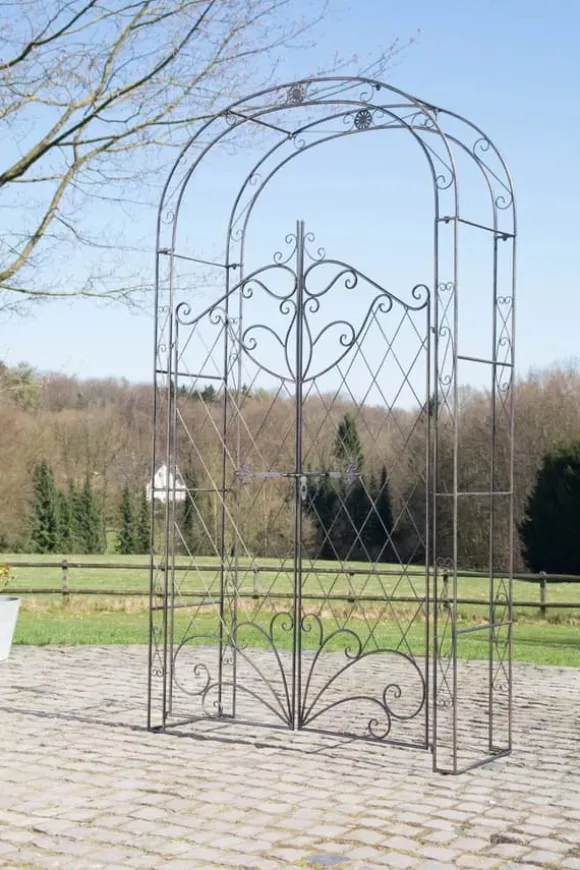 Our exclusive Melissa rose arch with gate is lovingly decorated with many details and is therefore perfect as a climbing aid for ivy and other climbing plants. But even freestanding, this rose arch with the two lockable and beautifully decorated gate wings is an eye-catcher in any garden. The rose arch was handcrafted from iron and is therefore extremely stable. A coating makes this rose arch high-quality and extremely durable. This is particularly important so that the arch does not collapse under full bloom. A total of 4 pre-drilled holes are used for fastening to secure the rose arch to the ground. This allows the rose arch to be easily and quickly secured in a stable position. Please note that ground anchors for fastening are not included. These can be ordered separately.