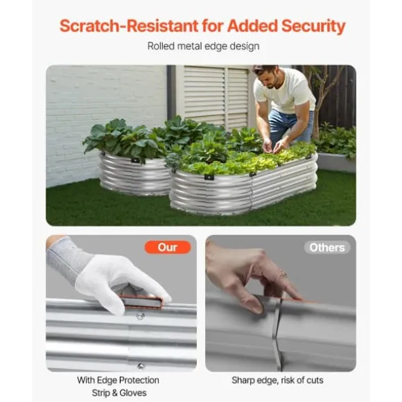 Med rullade kanter och kantskydd på vår upphöjda planteringslåda kan du känna dig säker under användning. I paketet ingår även ett par handskar för att skydda dina händer från repor. Med denna genomtänkta design kan du njuta av trädgårdsarbete helt bekymmersfritt!