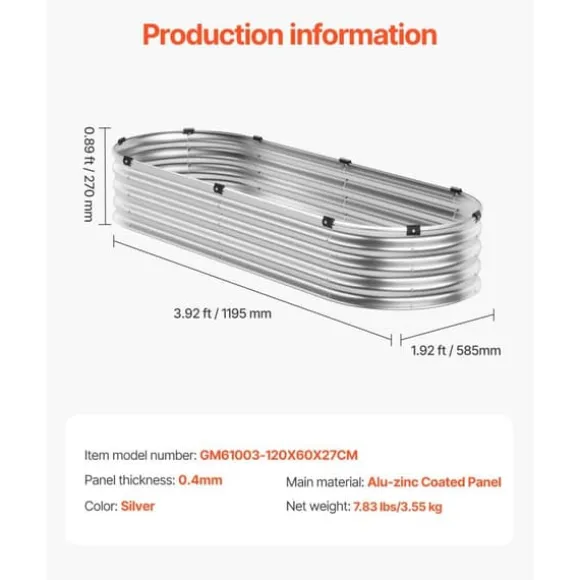 Den metallkonstruktion med sidopaneler på 0,4 mm gör denna upphöjda trädgårdsbädd ordentligt stabil. Ytan är belagd med galvaniserat pulver för att motstå rost och korrosion och ger långvarig användning utomhus. Nu kan du känna dig trygg när du sätter igång med trädgårdsarbete!