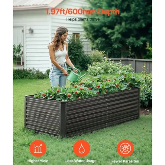 Gott om plats för växtlighet: Vår upphöjda trädgårdsbädd i storleken 6 x 3 x 2 fot är perfekt för medelstora växter och grönsaker med djupa rötter, vilket gör det möjligt för dem att växa starkt. Oavsett om du odlar grönsaker, frukter, blommor eller örter, kommer denna trädgårdsbädd att förvandla din utomhusyta till en vacker trädgård.