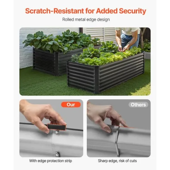Säker att använda: Med rullade kanter och kantskydd är vår upphöjda trädgårdsbädd säker att använda utan risk för skador eller repor. Du kan njuta av trädgårdsarbetet medan du känner dig trygg med att du är i goda händer.