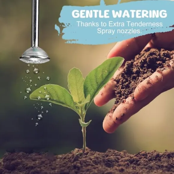 Det sfäriska munstycket fördelar vatten jämnt vid 45° vinkel. Tryckkänslig kontroll ger finfördelad dimma eller riktad stråle – perfekt för unga plantor och känsliga rötter.