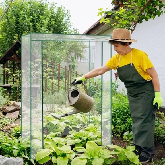 Dessutom fungerar detta växthus som en pålitlig beskyddare mot väder och vind. Folien fäster tätt och skapar en isolerande effekt som håller jorden varm och främjar snabb tillväxt av plantor. Oavsett om du odlar känsliga fröer eller robusta grönsaker, ger detta växthus ett effektivt skydd mot frost och kyla. Stabil konstruktion av metallrör garanterar långvarig användning och säkerhet mot stormar. Efter säsongens slut är växthuset lätt att demontera och tar minimalt med plats vid förvaring, vilket gör det till en utmärkt lösning för små trädgårdar och balkonger.