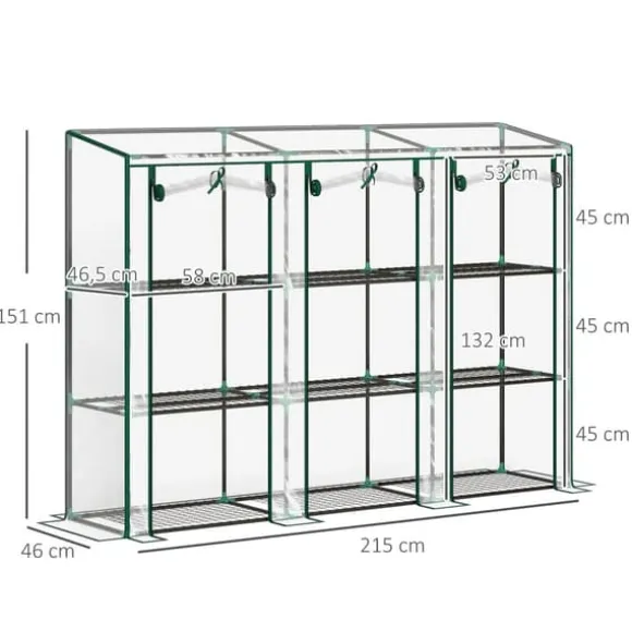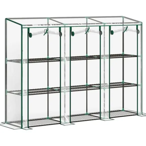 Kompakt växthus för trädgård och balkongSkydda och odla året runt med ett smidigt miniväxthus med tre hyllplan. Den transparenta plastduken skärmar mot regn och vind men släpper in rikligt med ljus, medan dragkedjeförsedd rullöppning ger enkel åtkomst och effektiv ventilation. Perfekt för fröbrickor, krukor och örter i mindre utrymmen.
