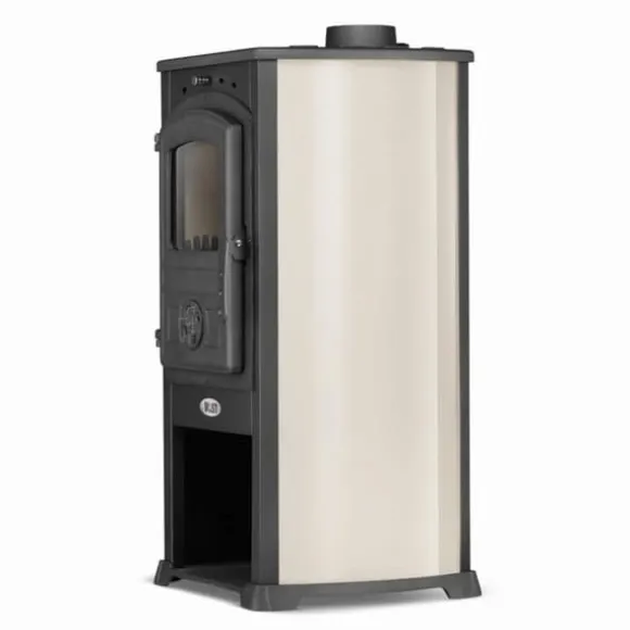 Rökgasutlopp:Utrustad med ett justerbart spjäll för att reglera draget, vilket påverkar kaminens förbränningseffektivitet. Dessutom har kaminen en gjutjärnsplatta, vilket gör det lätt att snabbt tillaga rätter.