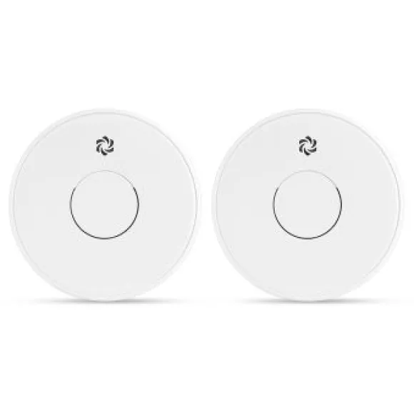 Två trådlöst sammankopplade optiska brandvararnare som snabbt detekterar långsamt pyrande bränder. Levereras med skruv och plugg för montering.